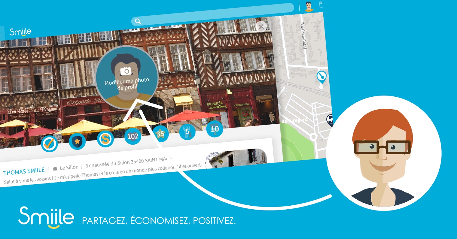 Commençons par un peu de pédagogie. Par défaut, vos voisins vous verront apparaître sous la forme d'un petit avatar, homme ou femme en fonction de ce que vous avez choisis au moment de votre inscription. Ce n'est pas l'idéal. En effet, sur Smiile, pour partager des objets, des services, du temps, des compétences ou un trajet, vous allez être amené à rencontrer VRAIMENT vos voisins. Smiile vous certifie déjà que vos voisins sur le réseau sont bien vos voisins dans la vraie vie en leur demandant de justifier de leur identité. C'est un premier pas pour créer le climat de confiance. Pour aller plus loin et encourager les échanges, nous conseillons à nos utilisateurs de personnaliser leur photo de profil également. Qui aurait envie d'inviter un avatar à aller chercher ses enfants à la sortie de l'école en dépannage ? La photo de profil rassure ! Ne vous en privez pas !
